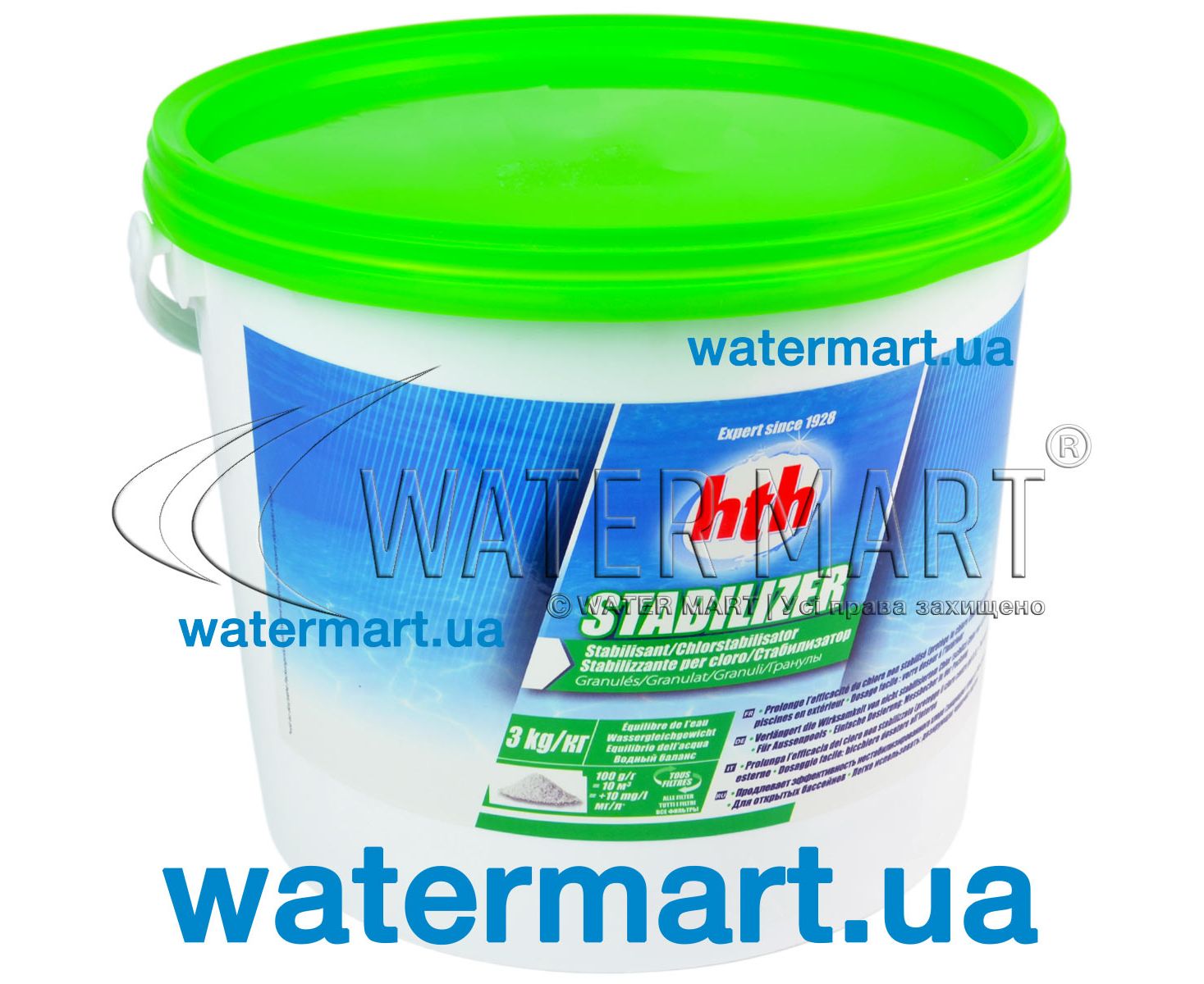 HTH Stabilizer Granules 3kg – стабилизирующий гранулированный препарат на основе изоциануровой кислоты Cyanuric Acid, применяющийся в качестве стабилизатора хлорсодержащих средств, которые используются для обработки и дезинфекции воды в плавательных бассейнах частного и коммерческого пользования: нейтрализует чрезмерное количество хлора в воде бассейна, защищает хлор от распада при воздействии ультрафиолетового излучения (особенно в открытых бассейнах, где вода подвергается сильному прямому воздействию прямых солнечных лучей). Используется в сочетании с нестабилизированными хлорсодержащими дезинфицирующими средствами, которые содержат гипохлорит натрия. Рекомендации по применению и дозировка. Средство добавляется непосредственно в воду бассейна порциями в места подачи отфильтрованной воды (перед подающими форсунками) во время работы фильтрующей системы. Для получения концентрированного стабилизирующего раствора объемом 10 мг/л необходимо использовать 100 г средства Stabilizer Granules HTH на 10 м³ воды. При последующей регулярной обработке воды в бассейне (при доливе свежей воды) следует поддерживать необходимую концентрацию изоциануровой кислоты – не выше отметки 75 мг/л (нормативное значение в диапазоне – от 25 до 50 мг/л). Препарат совместим с любыми типами фильтрационного оборудования. Подходит для использования в жесткой воде. Медленнорастворимый. Сокращает образование хлораминов в воде плавательных бассейнов.