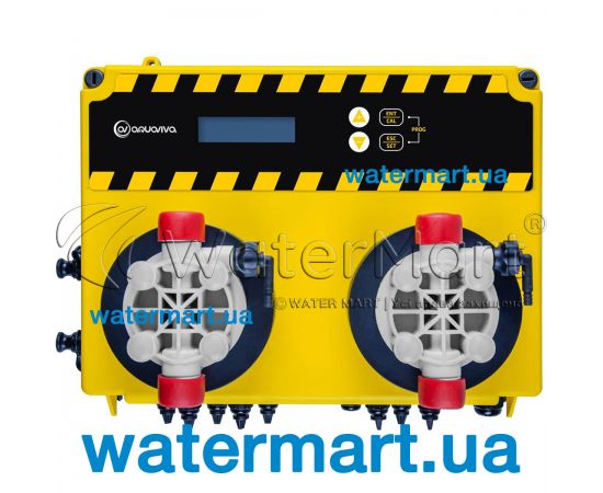 Aquaviva Diaphragm Dosing Pump System | pH / Rx / Free Cl | SXCBASEM0005 5 l/h – автоматическая станция максимальной производительностью 5 л/ч со встроенными мембранными насосами для непрерывного пропорционального дозирования жидких химических препаратов, использующихся для обеззараживания воды в плавательных бассейнах. Устанавливается в бассейны частного (домашнего) или общественного пользования с максимальным рекомендованным объемом воды до 500 м³.