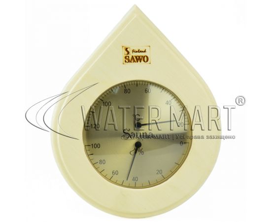 Sawo 251-THA – термометр-гигрометр с осиновым корпусом в форме «капли», использующийся в парильной комнате (сауне) для измерения температуры воздуха и уровня влажности. Оборудован большим круглым циферблатом, разделенным на две зоны/шкалы: верхняя – термометр, определяющий температурный режим, и нижняя – регулирует режим влажности внутри помещения.