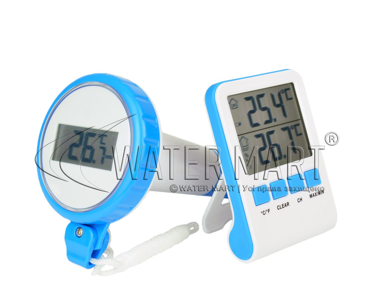 Основной блок можно закрепить на стене или установить на любой горизонтальной поверхности внутри помещения (оборудован удобной подставкой с тыльной стороны); имеет ЖК-дисплей, на который выводятся показатели температуры воды и воздуха в помещении с бассейном. Максимальное расстояние передачи сигнала – 60 м. Модель беспроводного термометра Bridge BH0640 комплектуется фиксирующим нейлоновым шнуром (при необходимости плавающий термометр можно прикрепить к лестнице).
