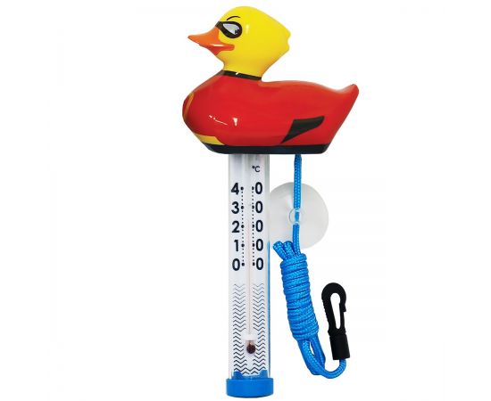 Kokido TM08CB/18 «Суперутка» – термометр-игрушка спиртового типа, использующийся для измерения температуры воды в плавательных бассейнах частного или коммерческого пользования и СПА-бассейнах (джакузи). Имеет шкалу отображения значений температуры воды в градусах Цельсия (от 0 до +40 °C) с крупными и легко читаемыми символами. Материалы изготовления – высокопрочный литьевой пластик, резина (материалы не содержат фталатов и других вредных химических соединений).