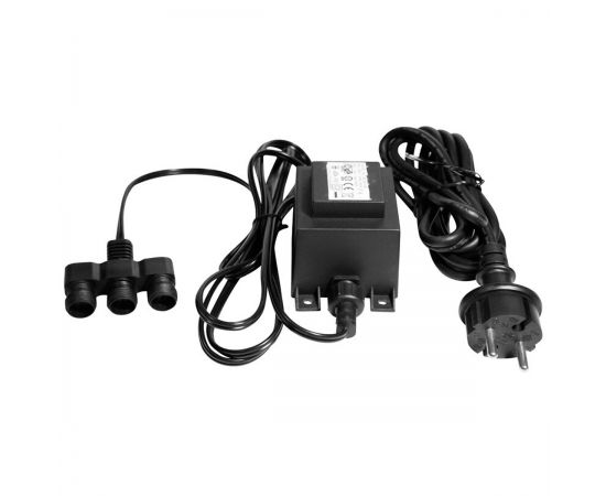 Водонепроницаемый трансформатор мощностью 36 Вт с трехсторонним распределителем, использующийся для питания (12 В переменного/постоянного тока) подводных светодиодных прожекторов для плавательных бассейнов в условиях повышенной влажности. Отличается высокой износоустойчивостью и надежностью работы. Благодаря соединительной системе «Easy-Plug» (разветвитель на 3 разъема) устройство подходит для наружной установки: фиксируется к поверхности винтами через размещенные на корпусе отверстия. Водостойкость – IP44. Электропитание – 230 В переменного тока. Комплектуется кабелем длиной 2,5 м.