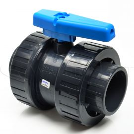 Кран шаровый ПВХ с накидными гайками Plimat - 75 мм