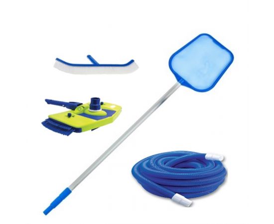 Комплект для уборки бассейна. В набор входят 5 предметов. Оборудования достаточно для уборки бассейна размером 9 х 4,5 м и глубиной до 1,7 м.