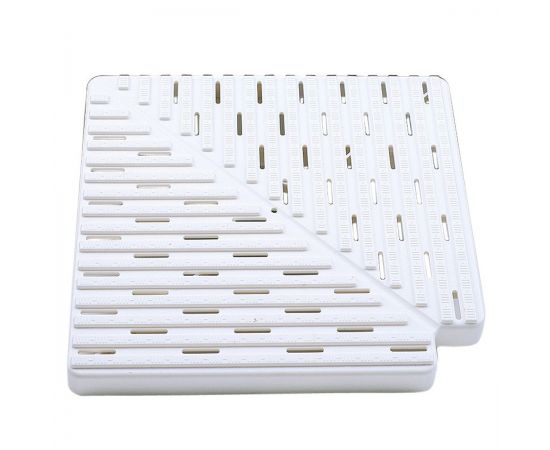 AstralPool 22383 – 90-градусный угловой элемент решетки для переливного желоба частных или общественных плавательных бассейнов. Используется для соединения между собой прямых элементов переливной решетки. Способ крепления к решетке – при помощи стального троса диаметром 2,5 мм (протягивается через отверстия, расположенные по краям углового элемента). Модель AstralPool 22383 изготовлена из литого полипропилена (PP) белого цвета, устойчивого к ультрафиолетовому излучению и химическим препаратам, которые используются для дезинфекции воды в бассейне. Для безопасного использования на поверхность угла переливной решетки нанесено противоскользящее покрытие.