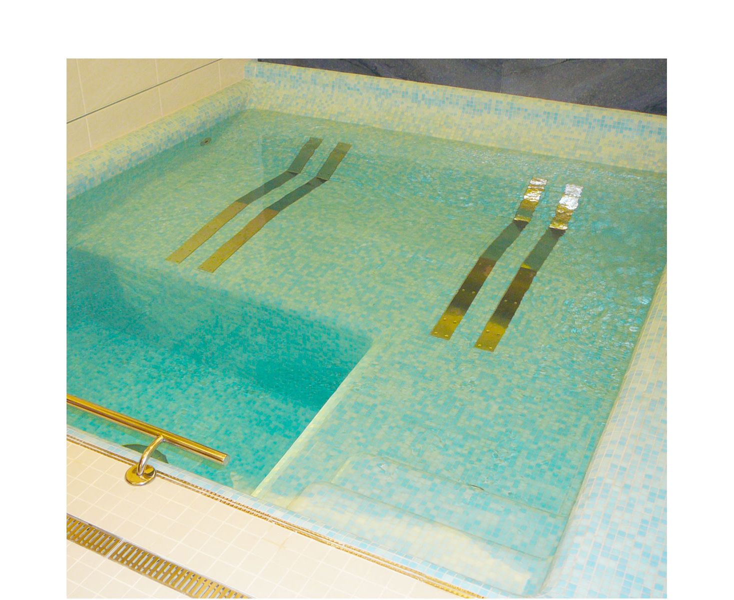 Аеромасажний лежак виготовлений із сталі АISI 304. Інша конструкція із цинкованої сталі. Нержавіюча частина травлена та полірована. Для плівкового басейну фланець ущільнений лише плівкою. Лежак сконструйований так, щоб можна було у кожної частини регулювати кількість повітря, що підводиться.