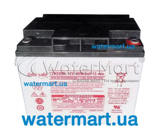 DataSafe® HX Battery Type by EnerSys (12HX80R - 80W/Cell 15 min. 12V | Terminal B) – лінійка герметичних акумуляторних батарей з регульованим клапаном низького тиску та свинцево-кальцієвими пластинами, що використовуються як додаткове джерело резервного електроживлення в побутових та промислових сферах (телекомунікаційні системи, офісне обладнання, комп'ютери, джерела безперебійного живлення, касові апарати, системи охорони та відеоспостереження).