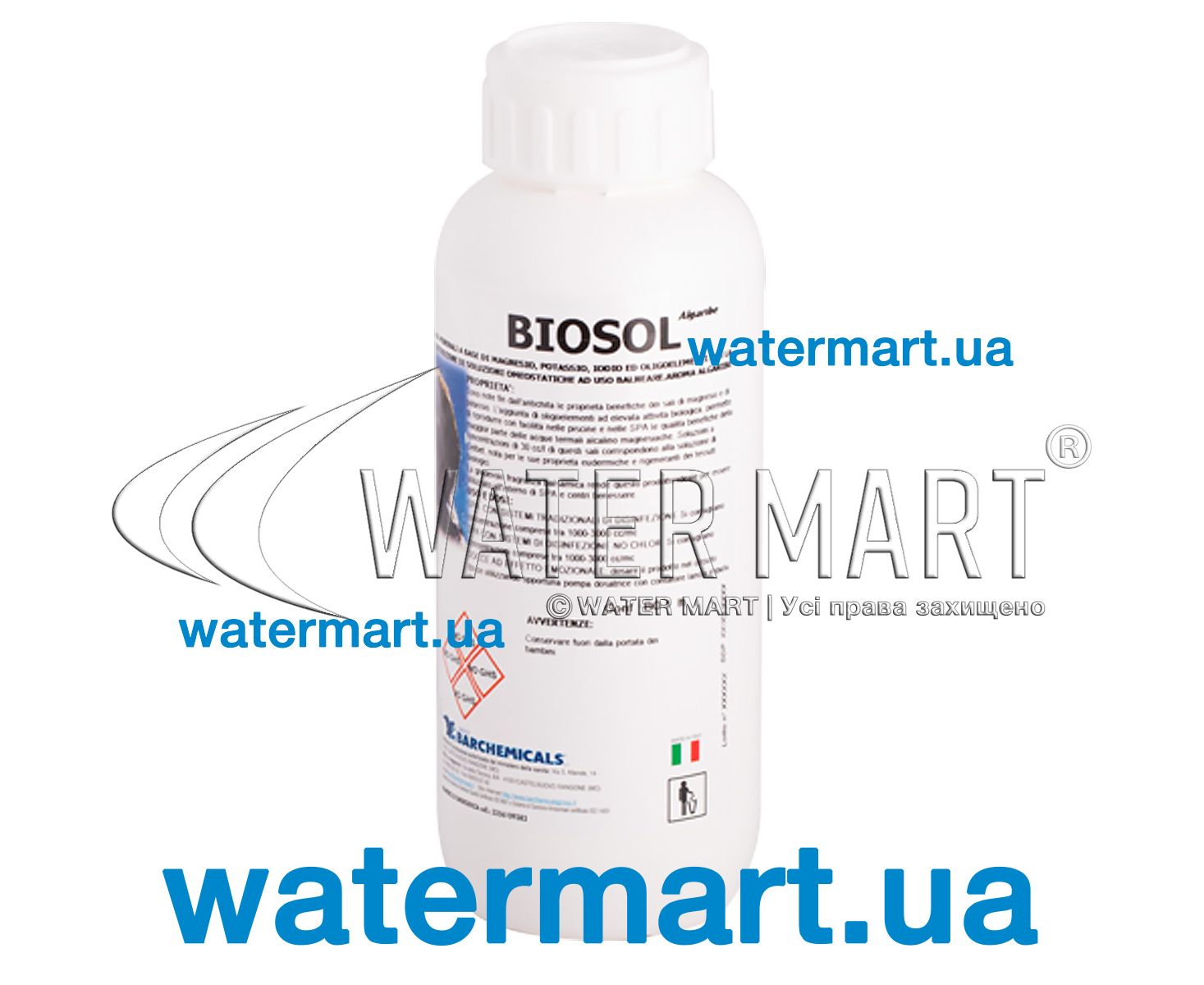 Ароматизатор Biosol AlgaRibe I SALI DELLA VITA ( 220636002 ) 1L – бальзамічний мінеральний розчин з ароматом «морська хвиля» із збалансованого розчину мінеральних солей на основі хлориду магнію та калію, йоду, аромату та інших корисних мікроелементів. Використовується в бальнеологічних цілях у гідромасажних міні-басейнах / СПА-ваннах та у домашніх чи громадських плавальних басейнах. За своїми властивостями розчин має лікувальний ефект і покращує стан шкіри, відрізняється сильною бактеріостатичною дією, і порівнюваний з характеристиками лужно-магнієвих термальних вод. Застосування засобу дозволяє отримати ефект впливу мінеральних солей та мікроелементів безпосередньо під час перебування у СПА-басейні. Колір – світло-синій. Випускається у пластиковій пляшці об'ємом 1 літр.
