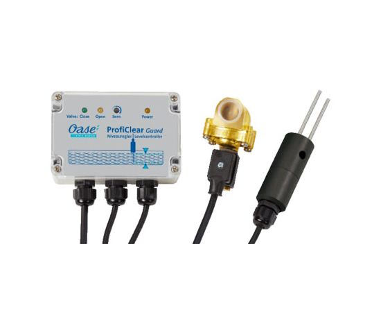 Система для автоматичного регулювання рівня води в штучній водоймі Oase ProfiClear Guard 50951 . Вбудований перемикаючий гістерезис запобігає випадковому доливу через коливання хвиль. Монтаж може здійснюватись у стіну. Здійснює надійне визначення рівня рівня води завдяки датчику, що проводить.