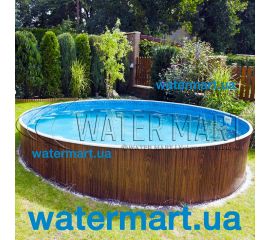 Овальний каркасний басейн Azuro Wood VARIO 407 DL. Довжина: 9,1 м. Глибина: 1,2 м. Ціна включає стальний каркас, лайнер Pebbels, обладнання фільтрації, скімер. Сходи купуються окремо.