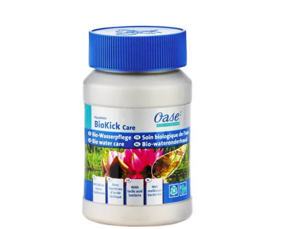 Препарат Oase BioKick Care 51283 містить автотрофні, гетеротрофні та молочнокислі штами бактерій, а також природні мінеральні добавки для надання яскравості кольору карпам кої. Приживаючись у ставковій екосистемі, дані мікроорганізми виконують безліч функцій, сприяючи створенню чистої та прозорої води біологічним шляхом. BioKick Care зменшує необхідність використання різних хімічних речовин для очищення водойми та лікування риб.