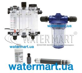 Комплект із датчика вільного хлору, тримача та колби під електрод з картриджним фільтром, що використовується для вимірювання рівня вільного хлору в басейнах.