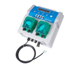 Станція дозування хімії Aquaviva pH / H₂O₂ продуктивністю 1,5 л/год із двома перистальтичними насосами. Для басейнів об'ємом до 250 м³.