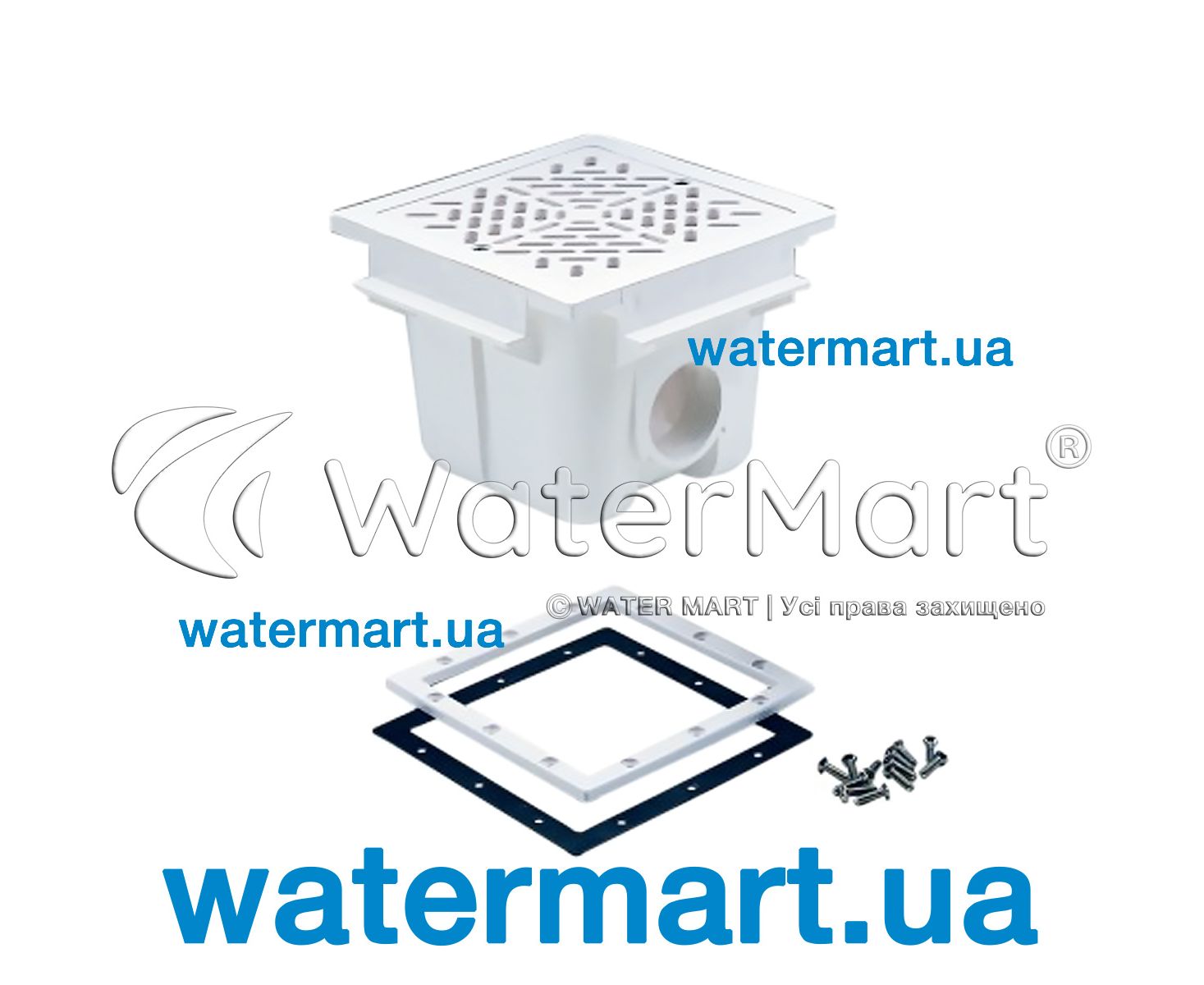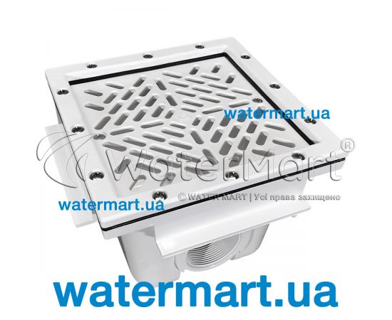 Скварі Main Drain with ABS grille 210 мм x 210 мм | 00273 by AstralPool - закладна з білого корозійностійкого пластику ABS, що використовується як основний елемент для забору та подачі води в систему фільтрації басейну. Підходить для встановлення в плавальні басейни домашнього (приватного) або громадського користування з плівковим внутрішнім облицюванням (ПВХ-мембрана / ПВХ-плівка / лайнер). Пристрій рекомендується монтувати в чашу з дотриманням мінімальної відстані до 2 м (між кількома донними трапами). Максимальна пропускна здатність – 13 м³/год. Донний трап виготовлений із міцного ABS-пластику білого кольору, що має стійкість до температурних перепадів, впливу прямих ультрафіолетових променів, агресивного середовища. Підключення – різьбове 2". Декоративна решітка кріпиться до корпусу донного трапу за допомогою нержавіючих гвинтів. У комплекті передбачені спеціальні фланцеві з'єднувачі для монтажу під плівку.