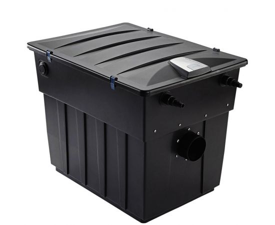 Фільтр для комбінованого очищення води Oase BioTec ScreenMatic 90000 (46178). Призначений для декоративних ставків об'ємом до 90 м³, ставків з рибою – до 45 м³. Пропускна здатність становить 8,0-12,5 м³/год. Монтаж фільтра проводиться лише вище за рівень води на березі. При цьому нижню частину фільтра можна закопати в землю для зменшення візуального фільтрувальної установки.