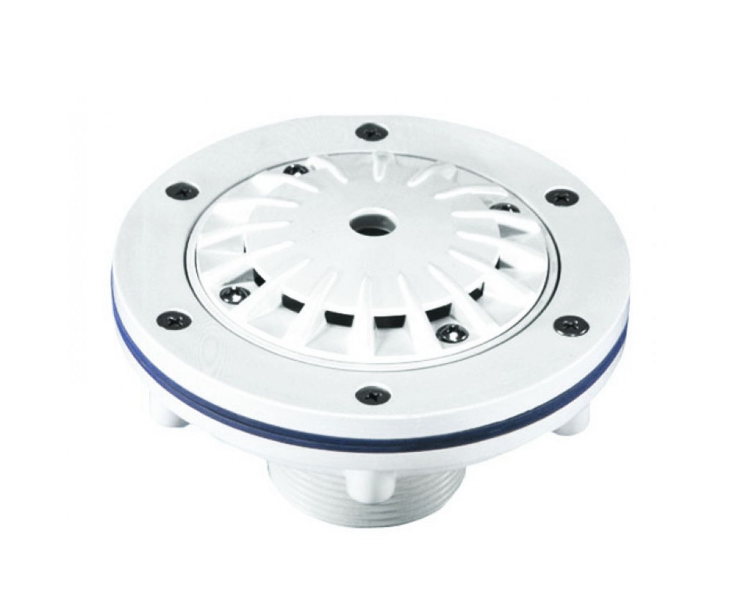 Форсунка донна Kripsol BIFL.C для плівкових басейнів. Виконана з високоміцного пластику, який стійкий до різноманітних хімічних впливів, вологи та ультрафіолетових променів. Форсунка із регульованим потоком від 0 до 100 %. Пропускна здатність становить 12 м3/год. З'єднання - 2"/50 мм. Шарнірні шурупи виготовлені з нержавіючої сталі.