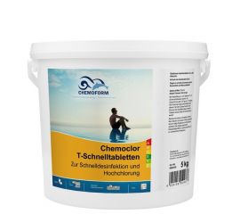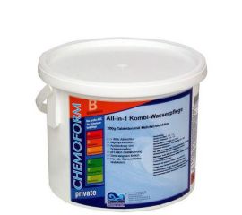Хлор тривалої дії мультифункціональний. Містить 90% активного хлору. Пігулки – 20 гр. Дозування: 1 таблетка на 2 м³ води басейну. Виробник – Chemoform AG.