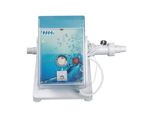 Електролізна установка Tebas - невеликий генератор хлору, який має титанові електроди. Рівень pH – 7.2-7.6. Підключення системи виконується за допомогою шлангів діаметром 32 та 38 мм (поставляються в комплекті). Пристрій має бути встановлений у сухому місці. У комплект також входить таймер зі світловим індикатором рівня солі, датчик протоку води, система автоматичного очищення електродів та силовий кабель довжиною 1,7 м. Крім цього, в комплектації передбачено датчик високого та низького рівня солі. Сіль додається безпосередньо до басейну. Рекомендується використовувати таблетовану сіль. У генераторі хлору Tebas передбачено функцію самоочищення. Корпус установки виконаний із пластику ABS, стійкого до ультрафіолетового випромінювання. Електролізна установка Tebas - це автоматичний хлоргенератор із продуктивністю хлору 15 г/год, який забезпечить чистоту води у вашому басейні без додаткової витрати хімічних засобів.