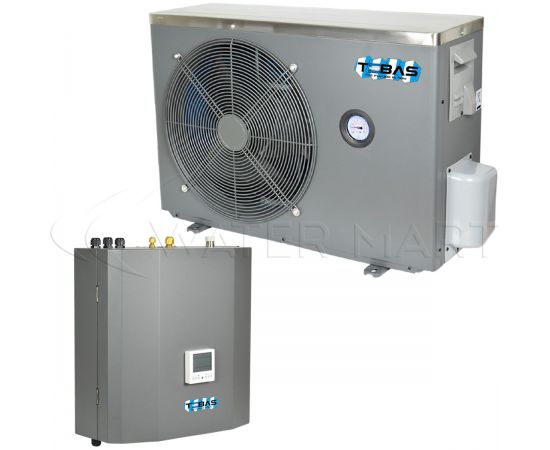 Тепловий насос інверторного типу Tebas Split-35 повітря-вода підходить для опалення/охолодження приміщень об'ємом до 140 м², а також для підігріву води у домашніх чи громадських басейнах. Пристрій з двох блоків (внутрішнього та зовнішнього) оснащено вбудованим циркуляційним насосом та електронагрівачем 3 кВт. Може працювати за низьких температурних режимів зовнішнього повітря (до -25 °С). Модель Split-35 має вбудований таймер, який можна запрограмувати на потрібний режим роботи.