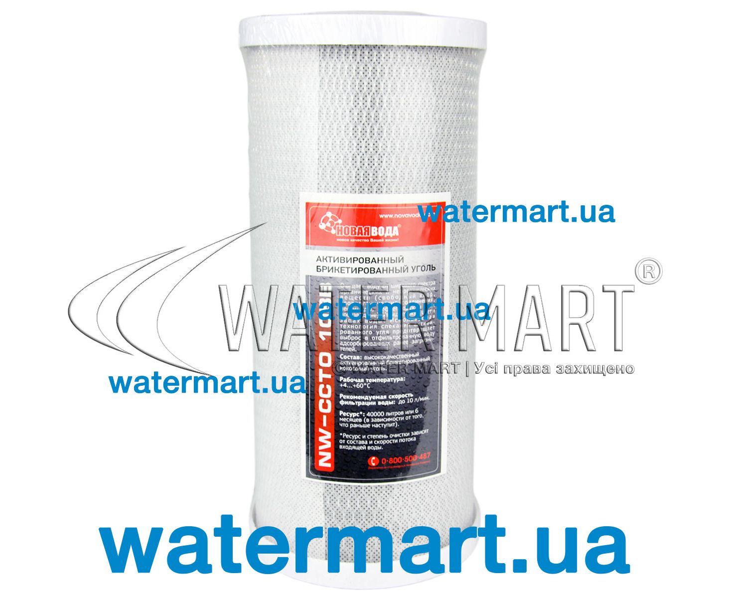 Змінний фільтруючий картридж Нова Вода CCTO-10BB стандартного типорозміру 10BB Big Blue з карбоновим фільтр-блоком використовується в системах очищення холодної води побутового та промислового призначення для видалення хімічних домішок: усуває неприємний смак та запах води, що виробляються хлором та іншими хлорами; видаляє органічні частинки забруднень та пестициди, важкі метали, фенол, нафтопродукти, бензол та ін. Складається з тубусу, наповненого пресованим активованим вугіллям з високими адсорбційними властивостями. Має номінальний ресурс до 4 тис. літрів. Потік, що рекомендується (швидкість фільтрації) – до 10 л/хв. Діапазон робочого температури – від +4 до +60 °C.