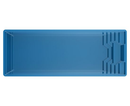 Представляємо вам найбільший басейн компанії Ampron. Довжина його досягає 10 м. Басейн має чітку прямокутну форму з дещо закругленими кутами. Тому відмінно підходить для занять спортом та купання великої кількості людей. Сходи розташовані декількома ярусами і також мають чіткі геометричні форми, утворюючи при цьому посадкові місця для кількох людей. Протиковзка поверхня забезпечує максимальну безпеку.