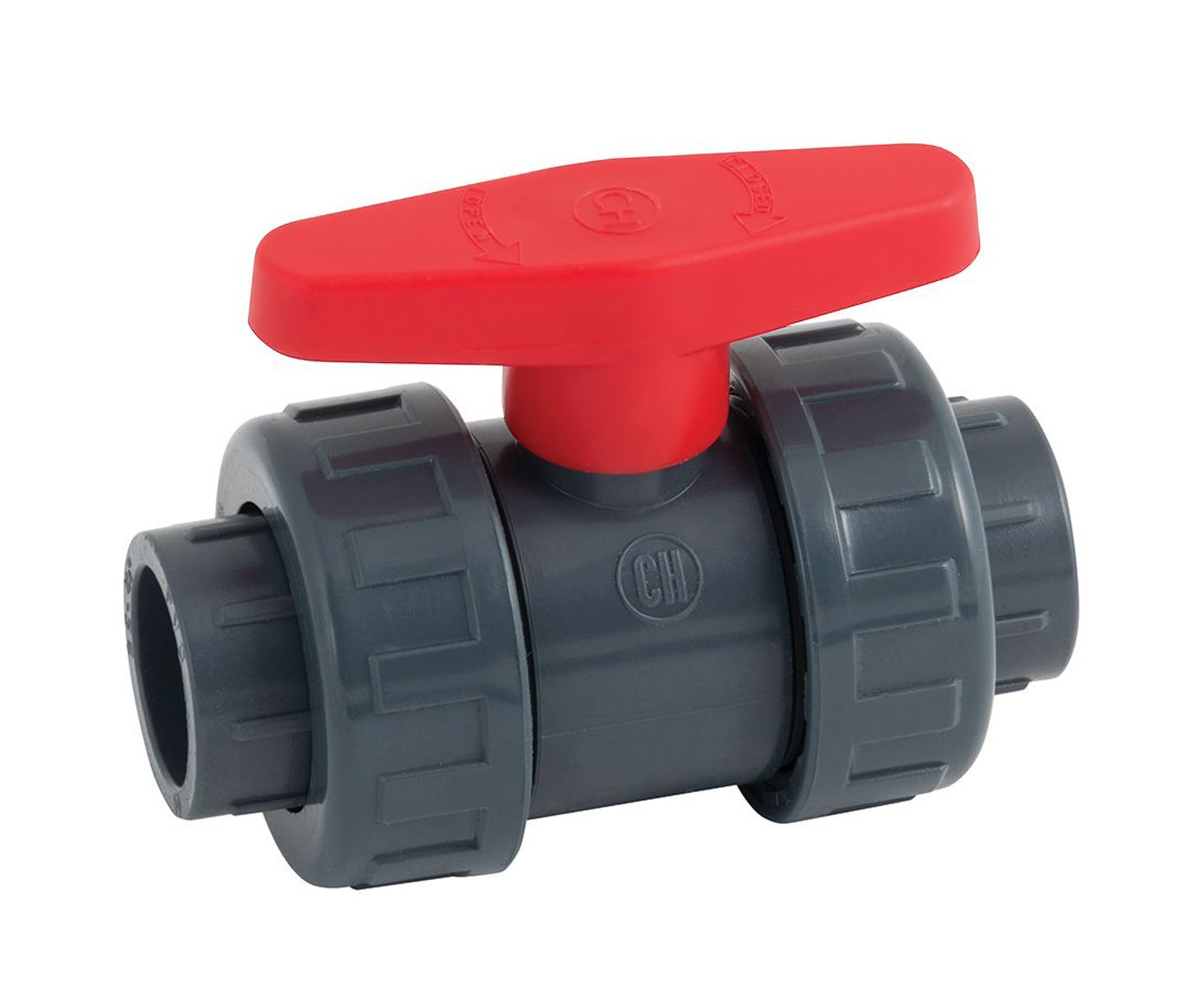 Кран кульовий ПВХ з накидними гайками (PTFE) CH - 40 мм