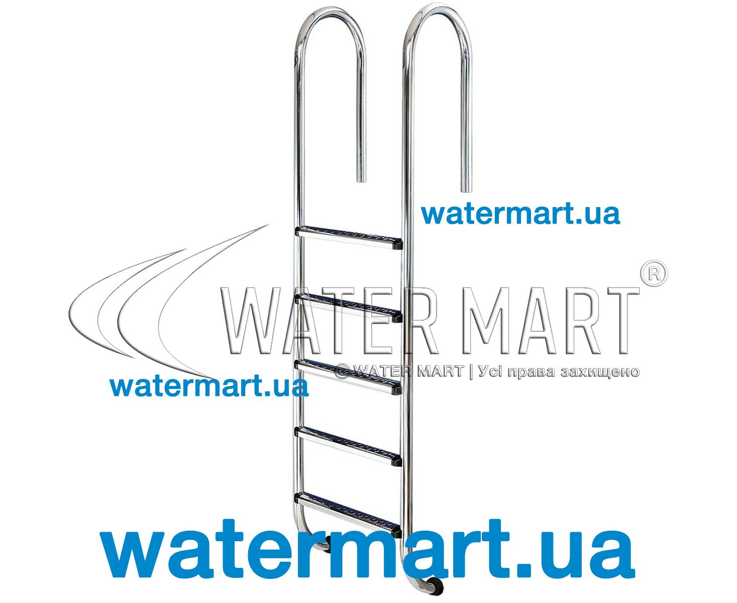 Нержавіючі сходи (сталь AISI-316) на 5 сходинок для басейнів з вузьким бортом. Тип кріплення: анкерний. Навантаження на сходинки (max): 150 кг.
