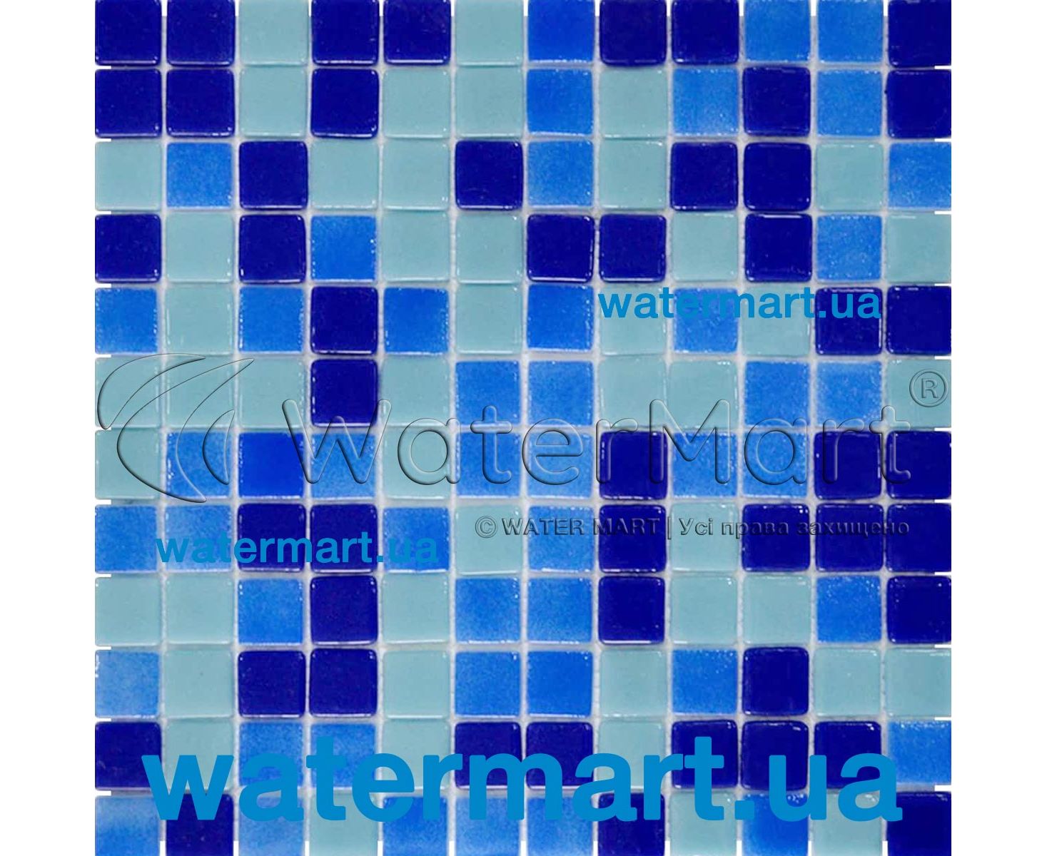 Матове мозаїчне покриття 25 х 25 х 5 мм Jamaika Dark KL051 для облицювання басейнів. Основа: папір. Колір: світло-блакитний, морська хвиля, темно-синій. Листів в упаковці: 22 шт. (загальною площею мозаїки 2,18 м²).