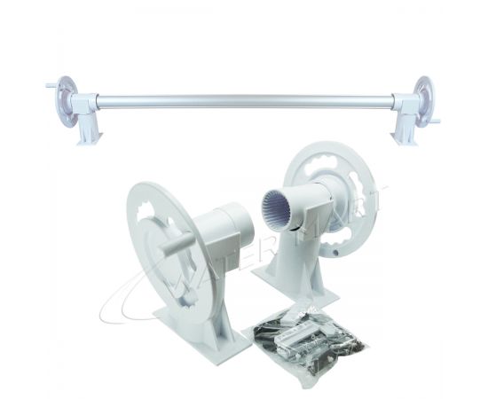 Намотувальний пристрій, призначений для змотування солярної плівки і термоізоляційного покриття для басейну. Дана конструкція має алюмінієвий вал із білими пластиковими стійками із білого пластику ABS. Ширина пристрою може бути відрегульована шириною басейну. У комплекті знаходиться 3 алюмінієві трубки довжиною по 2 м. Телескопічний намотувальний пристрій для басейнів (ширина до 6 м), оснащений запобіжником, який запобігає випадковому розмотування плівки. Основні переваги: зручність зберігання солярної плівки, зручність та легкість відкриття басейну перед купанням, зручність монтажу, безліч варіантів використання.