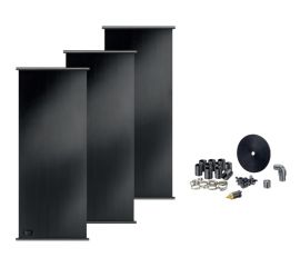 Комплект включає два колектори площею 3,7 м² кожен, алюмінієву раму для їх розміщення на даху і необхідний набір матеріалів для підключення до системи фільтрації.
