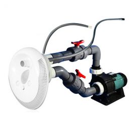 Пристрій штучної зустрічної течії Emaux на базі насоса AFS55. Об'єм подачі води становить 1300 л/хв. Максимальна висота стовпа – 17.5 м. З'єднання – 2.5"/75 мм.