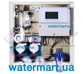Станція автоматичного дозування та вимірювання рівня pH та вільного хлору в басейнах об'ємом до 500 м³. Продуктивність: 5 л/год.