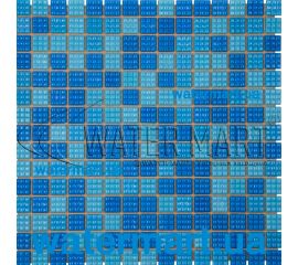 Мікс із скляної матової мозаїки на паперовій основі. Розмір: 20 х 20 мм. Колір: темно-блакитний, блакитний, світло-блакитний. Упаковка: 20 листів (2,14 м²). Лист: 327 x 327 мм. Мінімальне замовлення – 10 м².