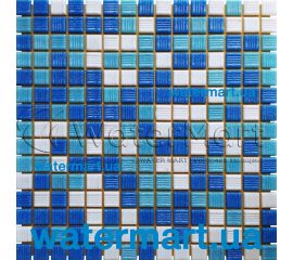 Мозаїчне облицювальне покриття 20 х 20 х 4 мм на паперовій основі серії Cuba Dark YF-MSLM02 для внутрішнього оформлення басейнів. Лист: 327 x 327 мм. Колір: білий, світло-блакитний, блакитний. Упаковка: 20 листів (площа мозаїки: 2,14 м²). Розмір мозаїки: 20 х 20 х 4 мм.Мінімальне замовлення – 1 коробка (20 листів / 2,14 м²).