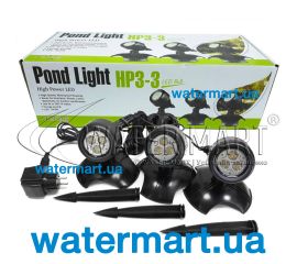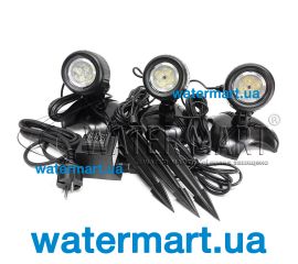 LED-прожектори для декоративних ставків та водоспадів загальною потужністю 10,8 Вт. Довжина кабелю 2 м + 5 м. У наборі 3 світильники.