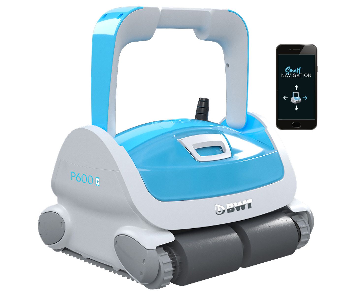 Модель робота-пилососа BWT P600 оснащена вбудованим модулем Bluetooth: спеціальна програма, що дозволяє дистанційно керувати робочими режимами робота за допомогою смартфона. Пристрій обладнаний двома зносостійкими повнопривідними електродвигунами та потужним насосом (система приводу Ultamate Power), що забезпечує максимальну надійність та ідеальне очищення поверхонь басейну. Робот BWT P600 може використовуватися для очищення будь-яких поверхонь плавального басейну, включаючи важкодоступні ділянки: однаково ефективно здійснює очищення дна, стін та ватерлінії. Підходить для всіх типів басейнів незалежно від виду облицювального матеріалу – поліпропіленові, композитні, бетонні басейни, оформлені плівкою, мозаїкою чи плиткою. Комплектується транспортувальним візком для зручного переміщення і вбудованим плаваючим кабелем довжиною 23 м з противохревим механізмом, завдяки якому робот може безперешкодно пересуватися по поверхні, що очищається.