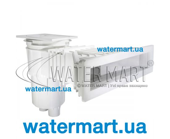 Пристрій забору води IML E-10NORM – нова серія скімерів (17,5 л) торгової марки IML із шириною горловини 562 мм, що відповідає стандартам EN-13451-1 та EN-13451-3. Встановлюється в бетонні басейни приватного або комерційного користування з облицювальним матеріалом у вигляді мозаїки/плитки. Підключається до труб діаметром 50 і 63 мм (має подвійне різьбове з'єднання: РВ 2" та РВ 1½"). Матеріал: білий пластик ABS, стійкий до ультрафіолету. Пропускна здатність становить 7,5 м³/год.
