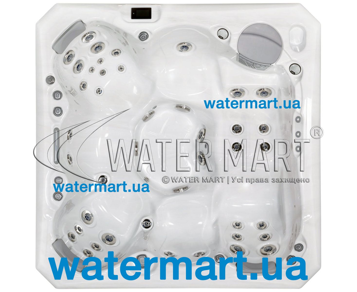 Модель гідромасажного СПА-басейну на 6 місць. Має 58 вбудованих форсунок для гідромасажу та 12 аеромасажних форсунок.