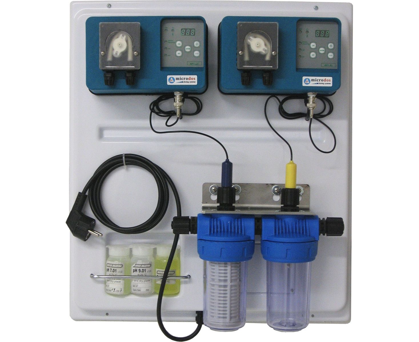 Дозуюча станція Microdos Pool Family 1 відноситься до обладнання, яке в автономному режимі може якісно обслуговувати басейни з об'ємом чаші до 175 м3. Контактні електроди, які визначають стан води та коригують показник pH – кислотно-лужний баланс та електропровідність – Redox у басейні, закріплюються у відповідних герметичних відсіках насосів. Завдяки тому, що все основне робоче обладнання виконане у вигляді окремих модулів, станція швидко збирається та легко вводиться в експлуатацію. Кожен насос знаходиться під керуванням окремого фірмового програмного чіпа, який за лічені секунди збирає та обробляє інформацію, а також формує команди, які сприяють рівномірному та точному впорскування хімічних реагентів у водообмінну систему басейну, беручи за орієнтир попередньо введені параметри. Набір буферних розчинів допоможе легко налаштувати занурювальні датчики на коректне вимірювання та порівняння діючих параметрів проточної води з початковими «ідеальними» показниками.