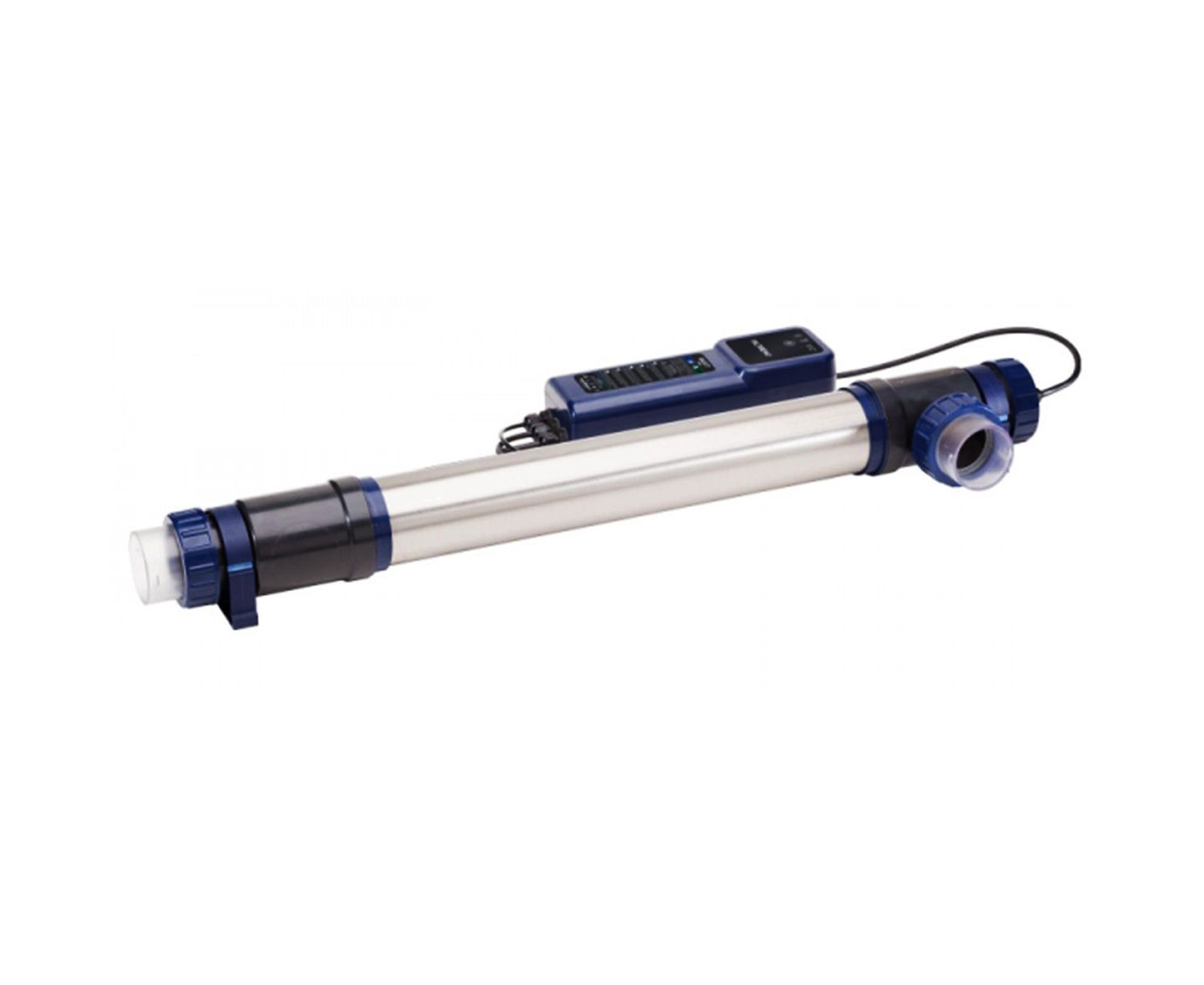 Лампа ультрафіолетова UVT0003 з лінійки моделей Titan відноситься до безреагентного обладнання для знезараження води в басейнах, об'єм яких може досягати 120 м3. Дезінфікуючий пристрій сумісний із звичайною та солоною водою, так як монолітний корпус виготовлений з титану, щільністю 2 мм. Очищення води ультрафіолетом виконує відразу кілька функцій: