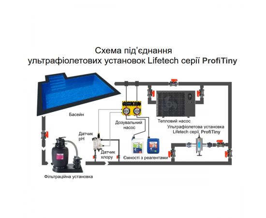 Призначення. УФ-установка монтується в приватні (домашні) або комерційні плавальні басейни з максимальним рекомендованим об'ємом до 90 м³ для знезараження води УФ-випромінюванням без застосування препаратів, що містять хлор.