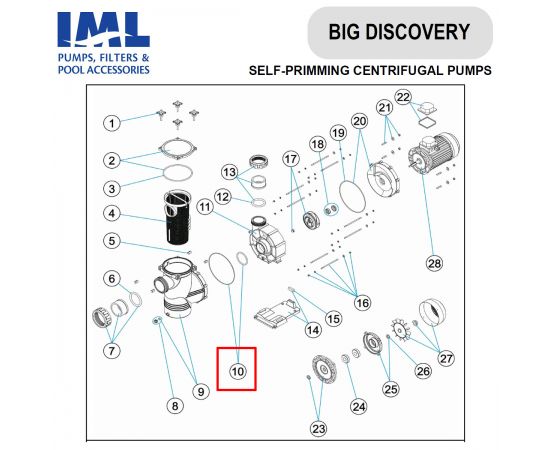 IML Big Discovery DY BODY COVER JOINT 4405010556 | HD021170 / HD021180. Запчастина (Ущільнювальне кільце корпусу) циркуляційних самовсмоктувальних насосів для басейнів IML, серія: Big Discovery DY.