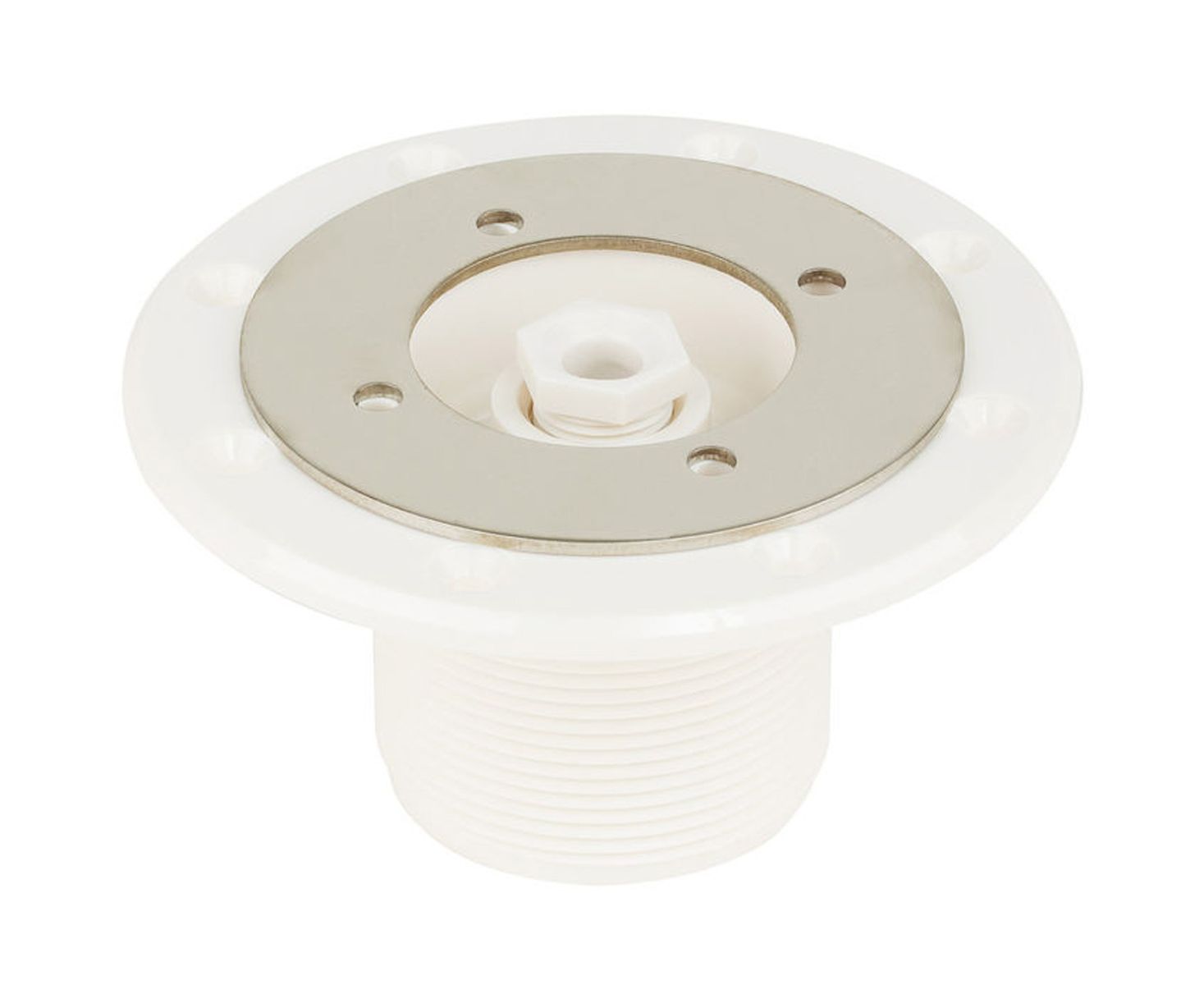 Корпус закладної виготовлений із міцного білого антикорозійного ABS-полімеру, що характеризується високою механічною стійкістю до зовнішніх дій, включаючи агресивні хімічні реагенти для басейну. Усередині корпусу є окремий канал для кабелів, що забезпечує подвійний захист дротів під напругою. Фланці та накладка, у свою чергу, виготовляються з якісної нержавіючої сталі, стійкої до ультрафіолетового випромінювання та деформації. Закладна має внутрішні та зовнішні різьбові насічки: 1½" та 2" відповідно.