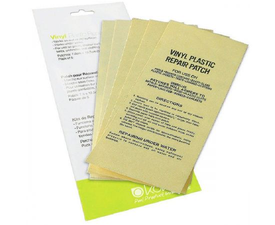 Латки Kokido K435PE – спеціалізований набір для здійснення ремонтно-відновлювальних робіт, потреба в яких виникає при різних розривах поліхлорвінілового облицювання (застосовується для оформлення чаш бетонних та збірних басейнів). Набір складається зі спеціалізованих безбарвних полівінілхлоридних латок , які не вимагають додаткових клейових речовин, тому що липкий шар вже нанесений на один бік латки. Така особливість ефективно скоротить час наклеювання полімерної латки. Також на економію часу впливає те, що латки можуть діяти на вологих поверхнях , а значить дефект, що виник, можна усунути практично моментально.