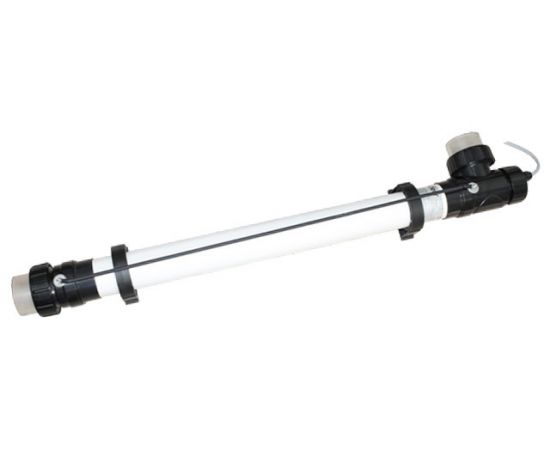 Ультрафиолетовая лампа Xclear UV-C Marine XH10752 предназначена для обеззараживания морской или подсоленой воды в прудах с рыбой объемом не более 75 м³. Корпус изготовлен из экстра стабилизированного PVC, устойчивого к действию солей и УФ-излучения. Мощность установки равна 75 Вт. Ультрафиолетовое излучение лампы обеспечивает гибель бактерий, вирусов и других низших микроорганизмов, останавливает процессы их роста и размножения.