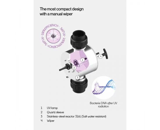 Charm LifeUVM0104-13-MW-AEP-LD DN60 Manual wiper (MW) Connection 2" | Fully automatic Swimming Pool Water treatment system by Lifetech | Medium-Pressure UV-Technology (200–600 nm) – ультрафиолетовая установка со встроенной УФ-лампой LifeUVM0104 среднего давления и ручным типом очистки / «Manual wiper» кварцевого кожуха.