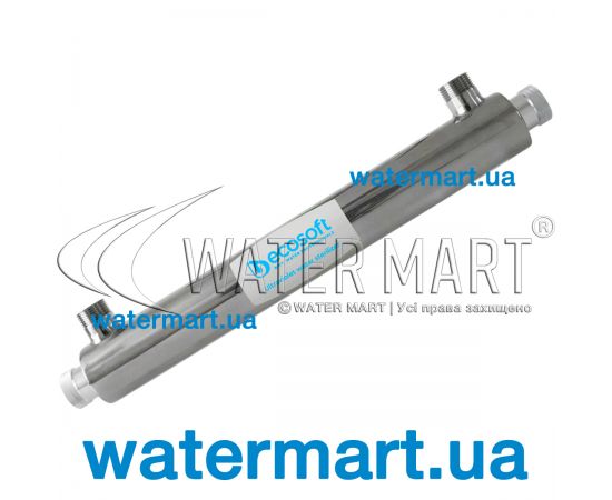 Ecosoft UV E-360 – модель ультрафиолетовой обеззараживающей лампы мощностью 21 Вт, применяющейся для дезинфекции питьевой воды: эффективно удаляет органические частицы и микроорганизмы в водопроводной воде без необходимости дополнительного применения химических реагентов и других дезинфицирующих средств. Интенсивность ультрафиолетового излучения УФ-лампы Ecosoft E-360 составляет 30 мДж/см². Корпус лампы выполнен из коррозионностойкой нержавеющей стали AISI-304L. Внутри корпуса размещен УФ-излучатель в кварцевом кожухе (высокочистый кварцевый материал, устойчивый к воздействию агрессивной среды, образованию накипи и других отложений). Номинальный срок службы лампы – 9 тыс. часов. Рекомендуемые требования к исходным параметрам воды: диапазон температуры воды – от +4 до +30 °C; мутность – 0,58 мг/л; показатель общей жесткости воды – до 2,5 мг-экв / 1 литр; уровень содержания железа – 0,3 мг/л; уровень марганца – 0,05 мг/л; содержание сероводорода – 0,05 мг/л. Подключение – резьба Ø 1". Рекомендуемый максимальный поток воды – 1,36 м³/ч.