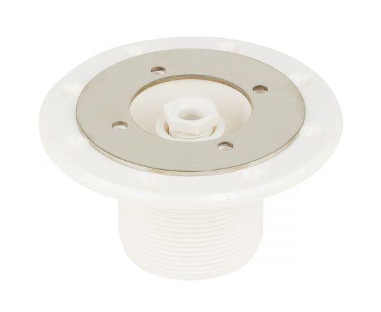 Корпус закладной изготовлен из прочного белого антикоррозионного ABS-полимера, характеризующегося высокой механической стойкостью к внешним воздействиям, включая агрессивные химические реагенты для бассейна. Внутри корпуса имеется отдельный канал для кабелей, что обеспечивает двойную защиту проводам под напряжением. Фланцы и накладка, в свою очередь, производятся из качественной нержавеющей стали, стойкой к ультрафиолетовому излучению и деформации. Закладная имеет внутренние и внешние резьбовые насечки: 1½" и 2" соответственно.