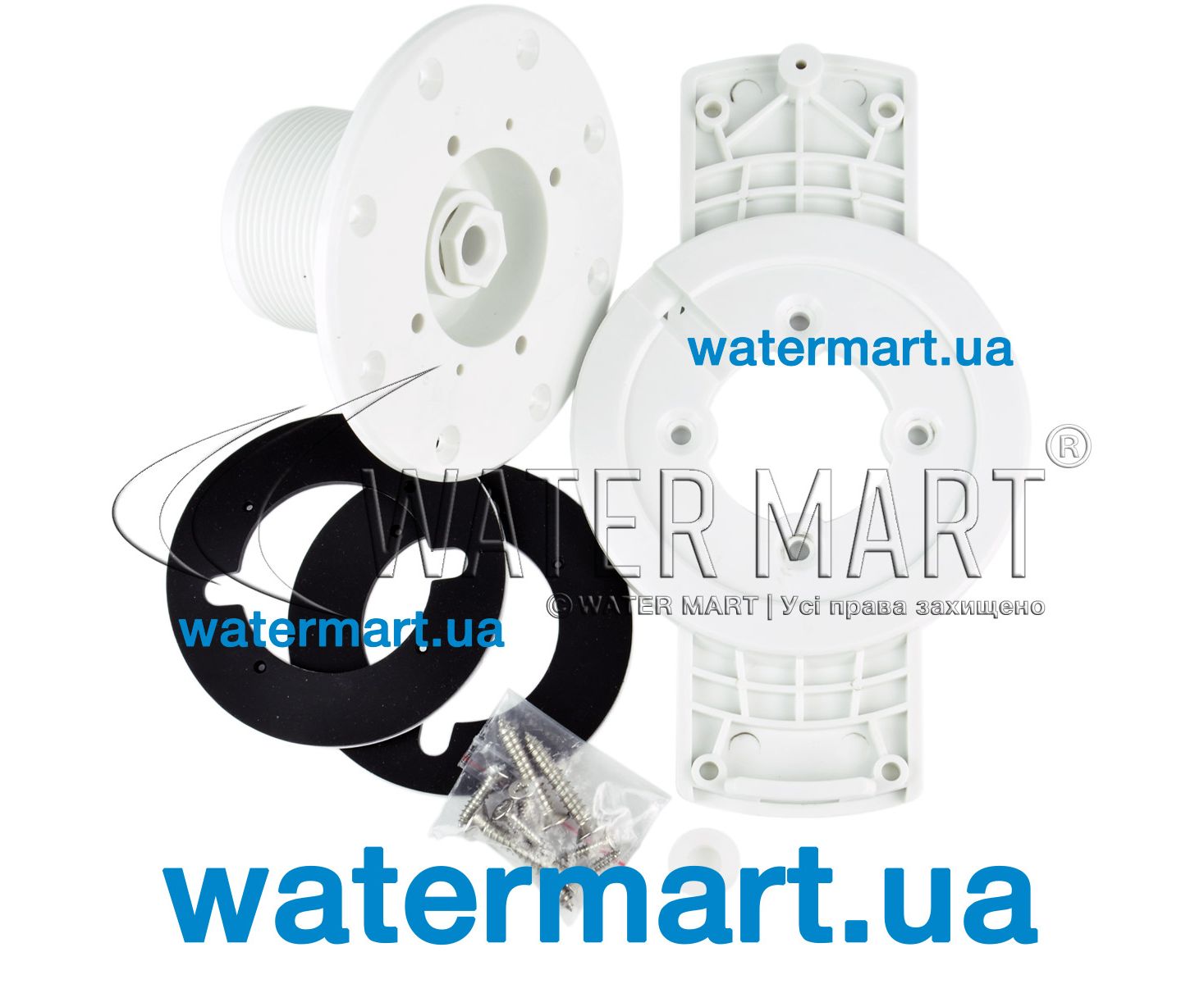 Myspa BR00004 – монтажный комплект к накладным светодиодным прожекторам Myspa BR00002 (18 Вт) для плавательных бассейнов, в которых в качестве внутреннего облицовочного материала используется ПВХ-пленка (лайнер). Подходит также для использования в полипропиленовых и композитных бассейнах. Комплектация: закладная деталь с наружной резьбой 1½"; прижимная накладка, к которой крепится прожектор, с проходом под кабель; уплотнительная муфта (1 шт.); уплотнительное кольцо (2 шт.), комплект шурупов. Ознакомиться с другими видами комплектующих и закладных к подводным прожекторам для бассейна.
